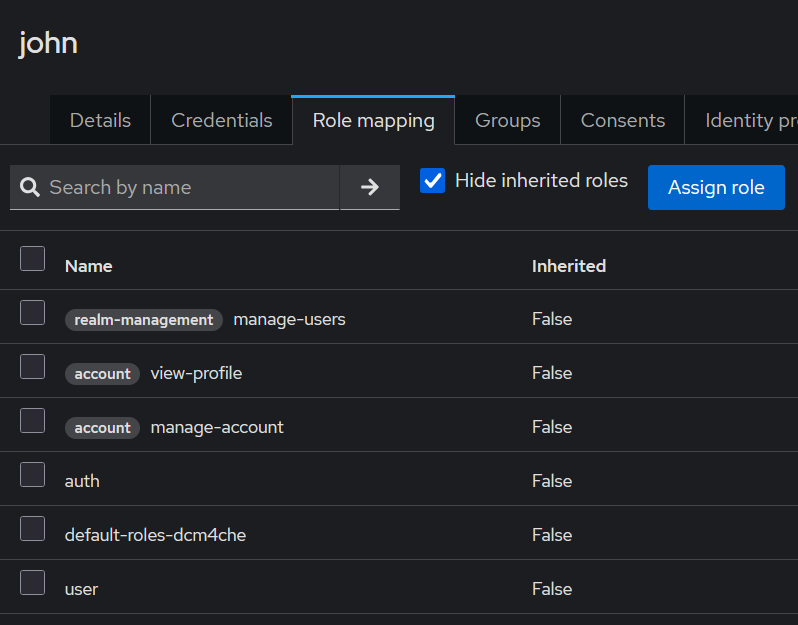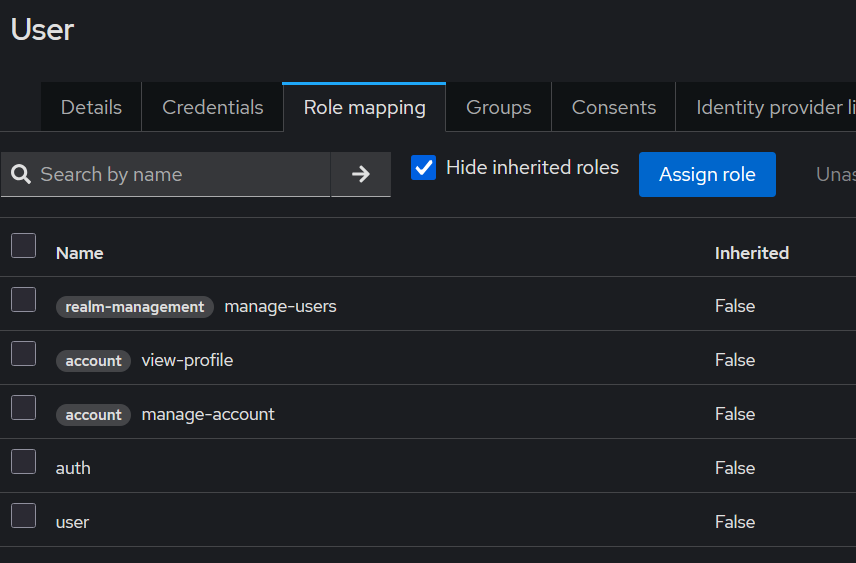 Navigate to Users → user → Role mapping