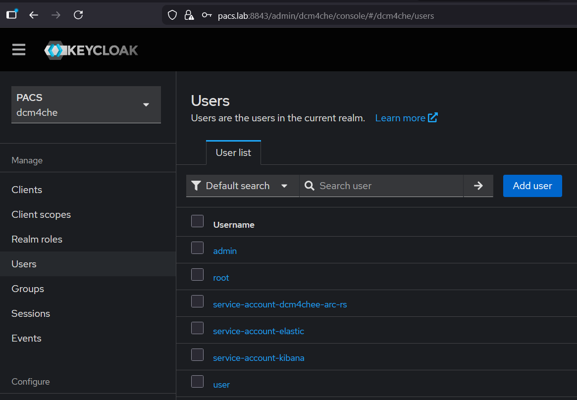 Navigate to keycloack (replace pacs.lab with your ip or hostname)